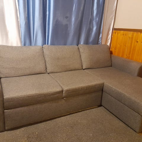 Kuvassa oleva ehjä divaani vuodesohva. Divaanin puoli vaihdettavissa. Leveys 230, syvyys 90 ja divaanin syvyys 160.