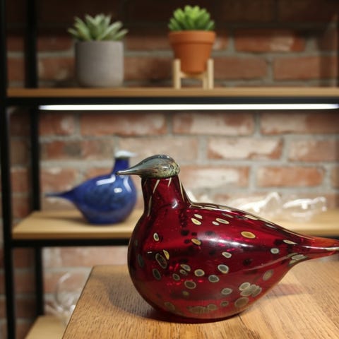 Syvä väri hehkuu kauniisti valossa ja tekee linnusta näyttävän katseenvangitsijan niin kokoelmaan kuin sisustukseenkin. Klassinen Toikka-muotoilu ja laadukas käsityö.