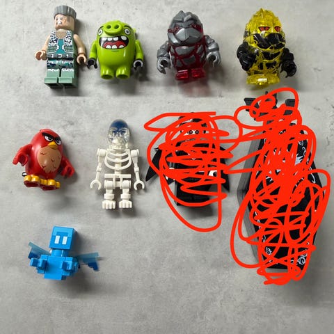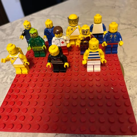 Lego ukkeleita ja niiden tarvikkeita
