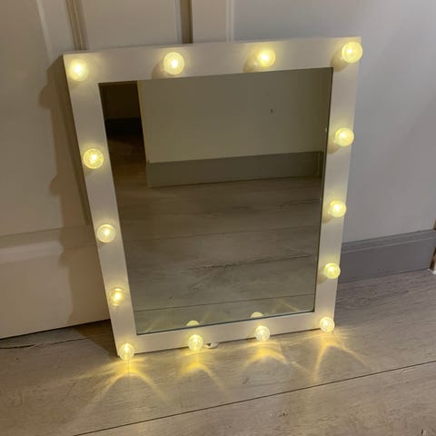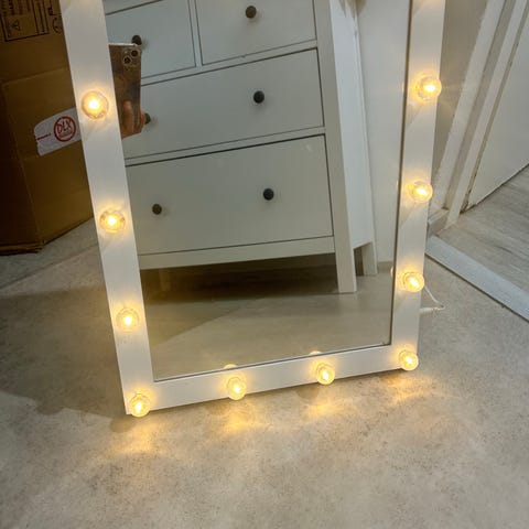 Myydään valkoinen meikkipeili valoilla. Ostettu clasohlsonista. Ei sovi muuton jälkeen enää.