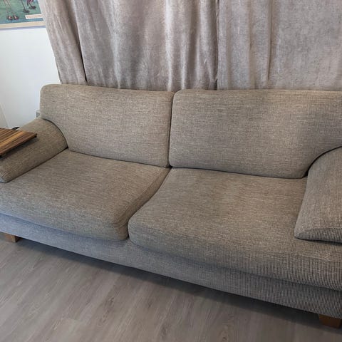 Sohvaa on säännöllidesti pesty tekstiilipesurilla ja suojattu Soft Care tekstiilien suoja-aineella. Sohva on edelleen ryhdikäs ja pitää muotonsa. Kankaassa on istuinosassa hieman pehmentymää verrattuna muuhun sohvaan. Ei kuitenkaan mitään mikä menisi kohta rikki.