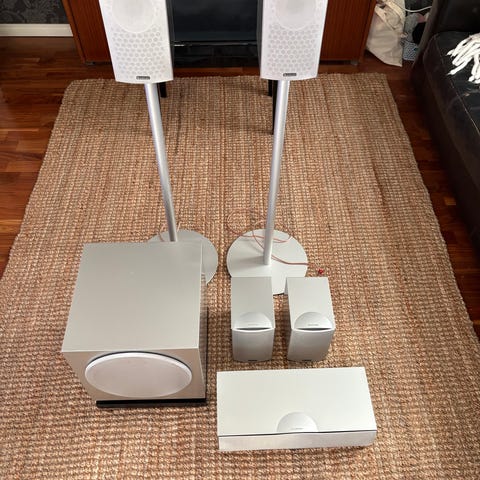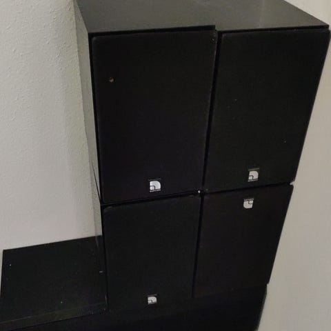 Audiopron Evidence E.2 keskiääni ja E.3 pääkaiuttimet. Kotiteatterikäytössä olleet ja nyt tarpeettomina. Pääkaiuttimissa yksinkertaiset kääntyvät seinätelineet. Kaunis väri. Yhteensä 50e. En postita.