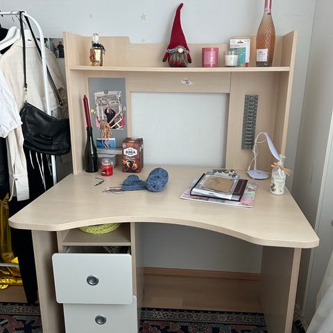 Hyvä ja kätevä pöytä mm. askarteluun tai remppahommiin. Irrallinen taso ja pukkijalat. Todella tukeva. Nopea haku.