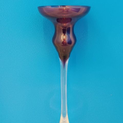 Kumela kynttilänjalka. Korkeus 15,5, leveys 9 cm. Signeerattu. Ehyt.