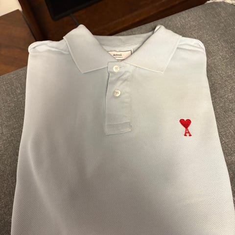 Comme des Garçons Play pitkähihainen paita, koko L. Paita on valmistettu puuvillasta ja siinä on sinivalkoiset raidat. Edessä on pieni punainen sydänlogo. Paita on suunniteltu miehille. 100% puuvillaa. Valmistettu Japanissa.