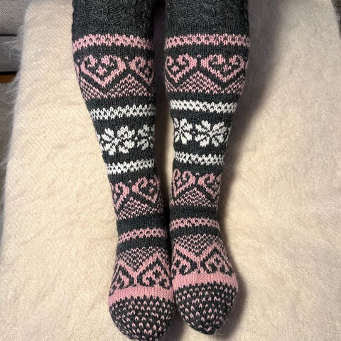 Käsinkudotut pitkät villasukat! Sukat ovat neulotut Seitsemän veljestä langasta villaa (80/20) koko 38/39!