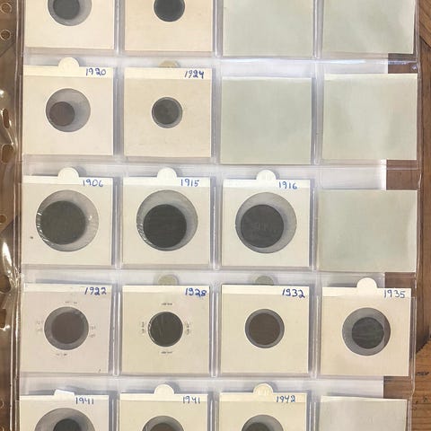 Muutama markka kolikko, kuparipennit vm: 1900, -03, -15, -16.