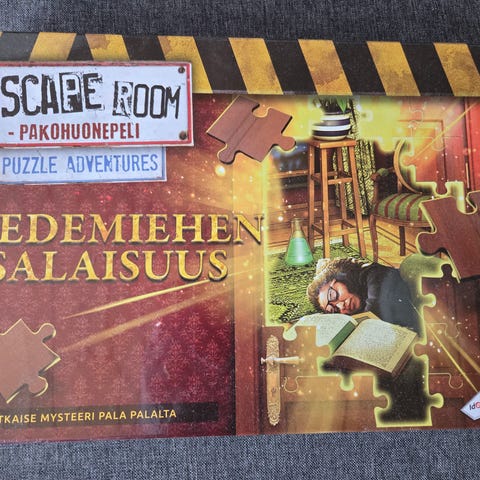 Escape Room - pakohuonepeli/palapeli, nimeltä Tiedemiehen salaisuus. Kerran pelattu läpi, kaikki palat tallella. Ei ole tehty merkintöjä.