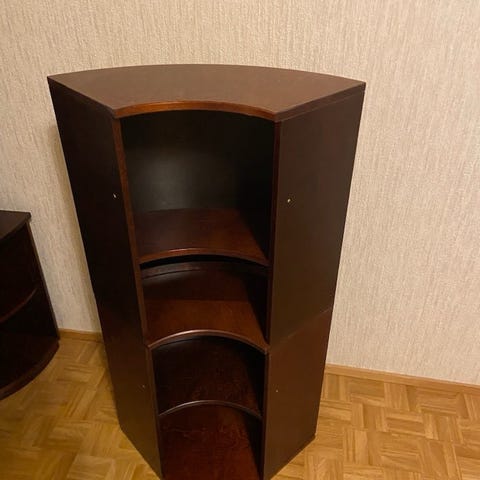 Annetaan kaksi hyväkuntoista kulmahyllyä.