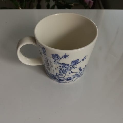 Arabia Muumi muki, "Merituuli", sinivalkoinen kuvitus. Laatikon kera.
