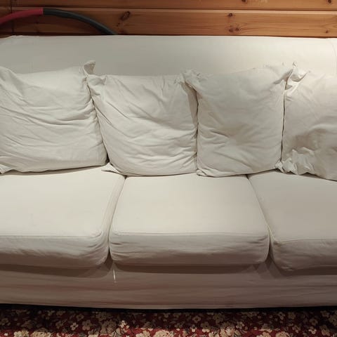 Myynnissä Ikean beige kangassohva. Noin kolmen istuttava. Istuinosilla pidetty koko ajan suojusta, joten pinnan pitäisi olla siisti ☺️ taloudessa ei ole ollut eläimiä.
