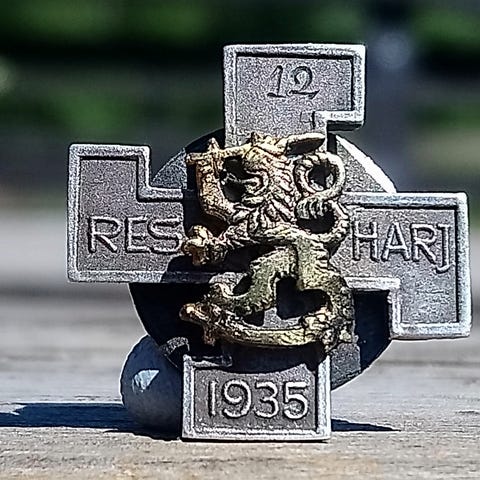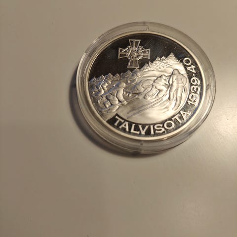 Sodan aikainen hopea 813H merkki. Kellonperä suomi leijonalla sekä lisätyillä hopeakolikoilla.