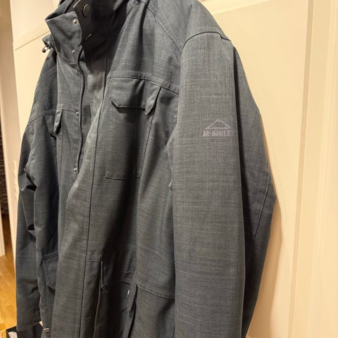 Hyväkuntoinen tummansininen McKinleyn takki on kokoa XL. Lämmin vuori, isot taskut, joiden päällä vielä vetoketjulliset taskut. Myös ylhäällä iso tasku. Vetoketju- ja tarrakiinnitys. Hupussa nepparikiinnitys ja karvareunuksen saa pois (nappikiinnitys).