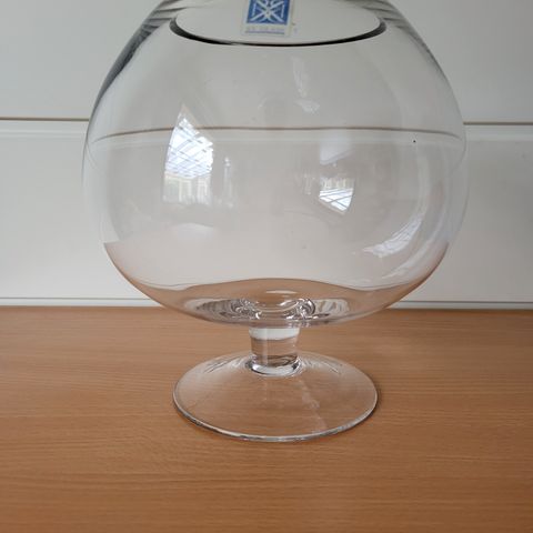 Komea betonialusta ja mattainen koristeltu lasi, esimerkiksi pienelle kynttilälle. Ehjä, paitsi lasin mattapinnassa jotain kulumisen merkkiä.