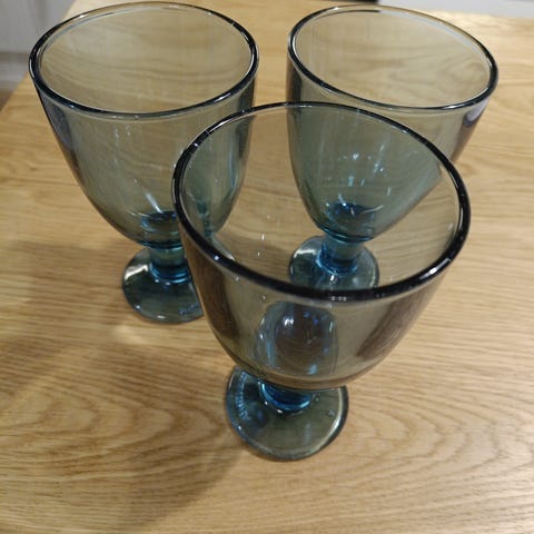 Iittala lasiset kulhot, väri sininen. Kulhot ovat läpinäkyvää lasia, sopivat esimerkiksi tarjoiluun tai säilytykseen keittiössä. Pieni parin millin pala toisesta lohkennut