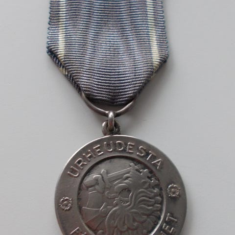 Mitali, myöntötodistus, esite, nauhat ym.