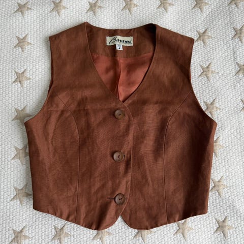 Tyylikäs Visagen retroliivi 1980-1990 luvulta. Liivin etupuolella on kaksi valetaskua ja materiaaleina puuvilla sekä asetaatti. Oikein hyvä käytetty kunto. Mielestäni unisex!