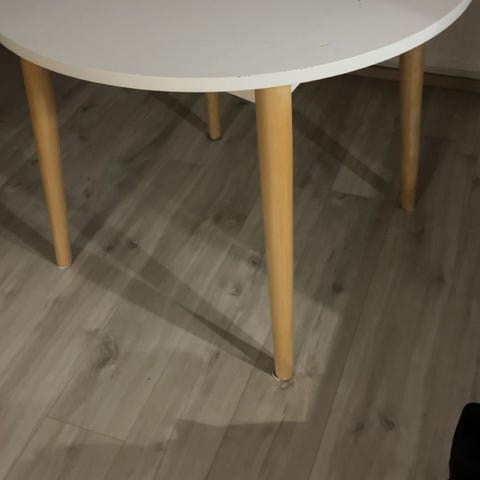 Annetaan muuton alta pois täyspuinen (mänty), valkoiseksi maalattu pirttikaluston pöytä. Monenlaista elämänjälkeä on pöytäpinnassa, osa varmasti poistettavissa ihan vaan tehokkaasti jynssäämällä, osa sellaisia, että vaatisi kunnon entisöinnin. Pikainen nouto Jyväskylän keskustasta. Pituus 160cm, leveys 76cm, korkeus 73cm.