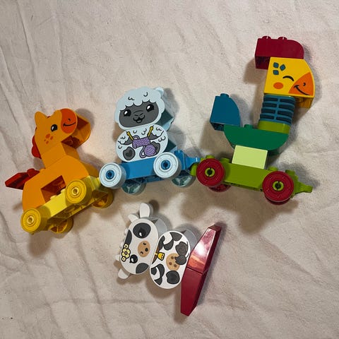 LEGO DUPLO My First 10965. Kelluva eläinjuna. Huom. vain 1 uimarenkaan puoliska tallella. Hyvässä kunnossa muut kuitenkin.