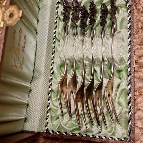 6kpl melhior/hopea haarukoita alkuperäisessä laatikossa