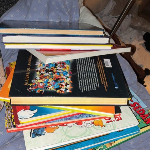 Myydään läjä Aku ankkoja, mukana myös yksi Simpson - lehti.