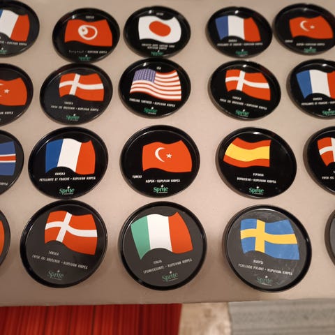 Neljä peltistä Sprite lasinalusta. Hyväkuntoisia. Hinta 1e/kpl. Postitus 3e.