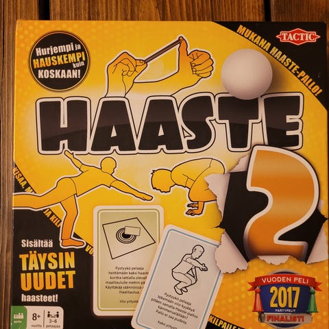 Haaste 2 lautapeli. Haastepallo (pingis pallo) sekä noppa (tavallinen noppa) kadonnut eli niitä ei mukana. Muuten kaikki tallessa. Hyväkuntoinen. Kysymällä saa lisätietoa tms