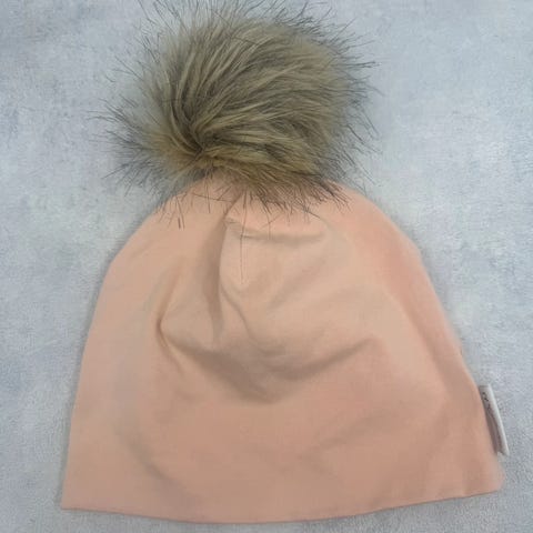 Gugguu lasten pipo vaaleanpunaisena, materiaali puuvillaa, koko one size. Sopii tytöille. Pipo on varustettu kahdella tupsulla.