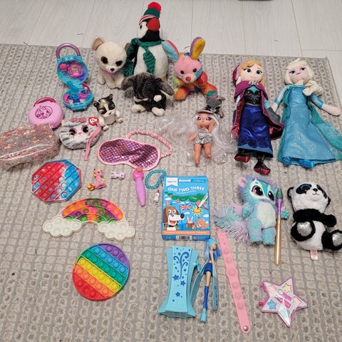 Disney Frozen pehmolelu setti, joka sisältää hahmot Elsa, Anna ja Olaf. Pehmolelut ovat pehmeää materiaalia ja sopivat lasten leikkeihin.
