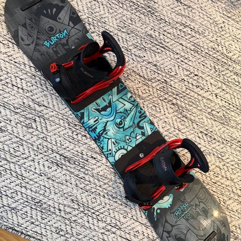 Burton Chopper lumilauta, pituus 115 cm + Grom siteet ja Grom lumilautakengät kokoa 34.