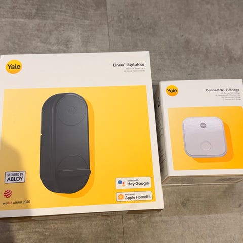 Yale WiFi Bridge Yale älylukoille. Tämän avulla voit tarkistaa etänä, onko Yale lukko lukittu tai onko ovi jäänyt auki