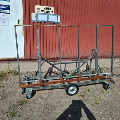 Myydään vankat levykärryt työmaille levyjen, ikkunoiden, ovien, lautojen ja muiden rakennustarvikkeiden siirtoon työkohteeseen. Kärryssä kokokumiset renkaat, jotka liikkuvat ulkonakin.