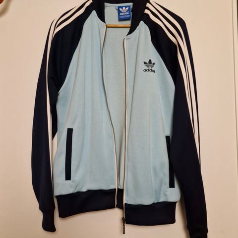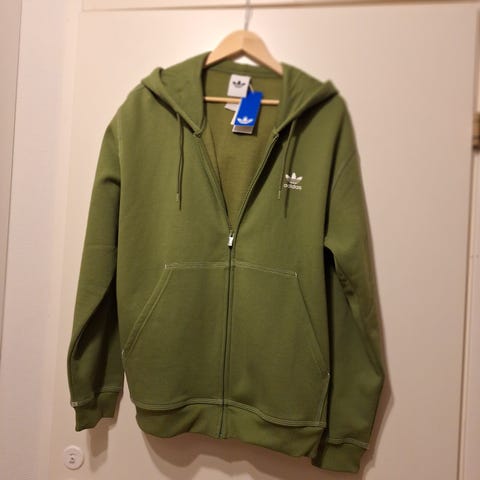 Kysympä ennen palautusta haluaako kukaan ostaa uutta vihreää Adidas college takkia, 95% puuvillaa, 5% elastaania, vuori harjattu ja lämmin.