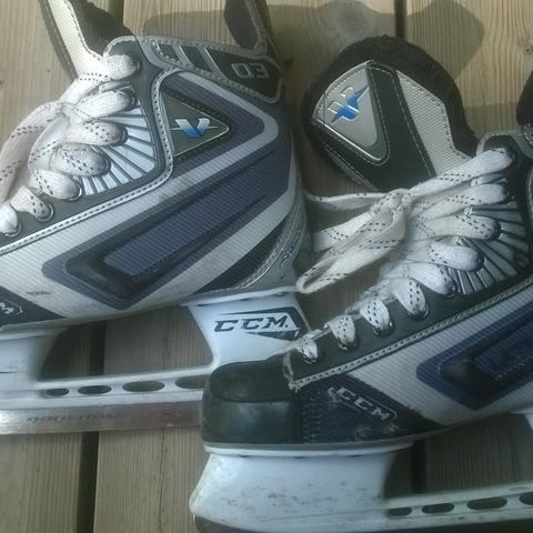 34 koon CCM hokkarit, toisesta luistimesta nauhat poikki. Muuten hyväkuntoiset