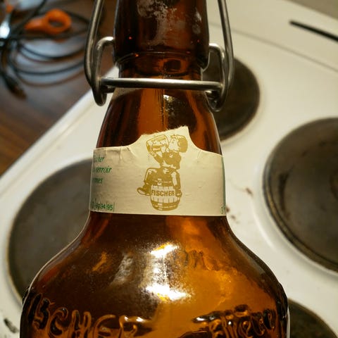 Lasiset pullot vanhasta limukkakoneesta. Korkeus n.21cm