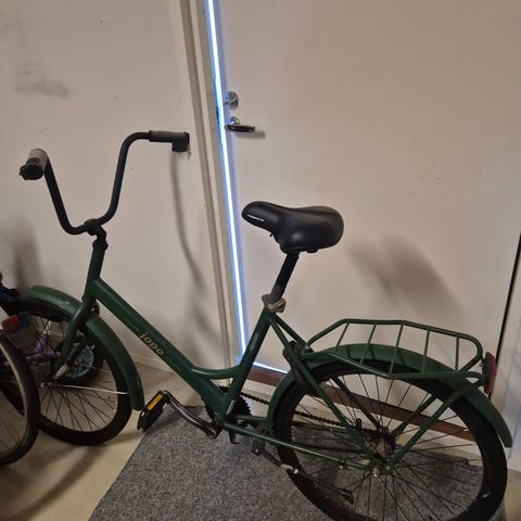 Vihreä Jopo 24 tuumaisilla etu käsijarru ja jalkajarru 3vaihdetta simano nexus pyörä on siisti ja hyvin kunnossa