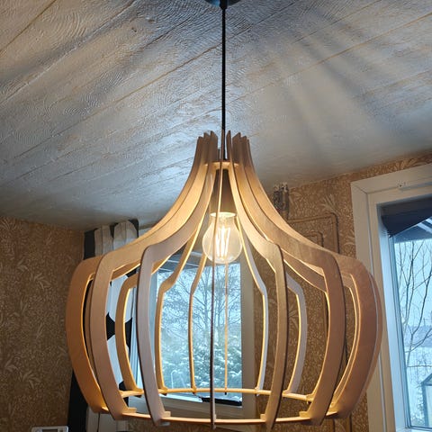 Erinomaisen kuntoinen Trio Wood valaisin k-raudasta