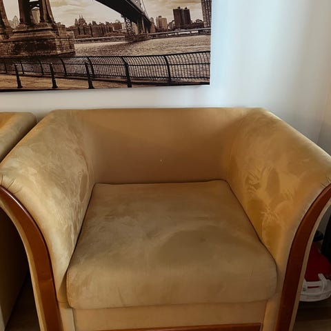 Annetaan nojatuoli. Joitakin tahroja, taitava mekaanikko saattaa jopa korjata mekanismin. Mutta näinkin kiva ja pehmeä istua. AMM. Nopea haku etusijalla.