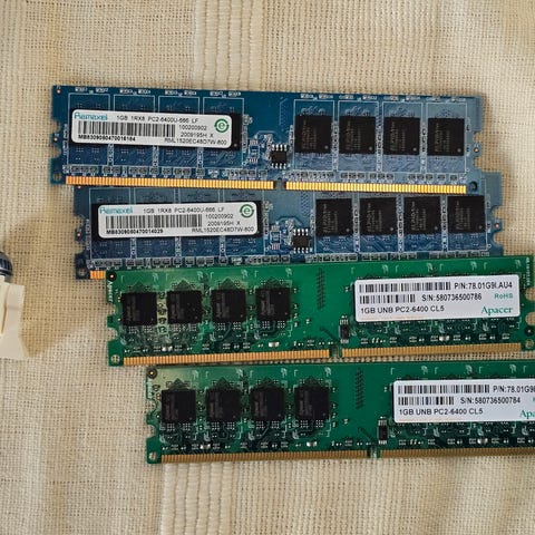 RAM-muistit eri malleja ja kokoja, sopivat erilaisiin tietokoneisiin. Kuvissa näkyy useita eri valmistajien ja eri kapasiteettien muistimoduuleja, jotka voivat olla DDR, DDR2, DDR3 -tyyppisiä ja muuta DDR4. Muistit ovat käytettyjä ja vaihtelevat kooltaan ja teknisiltä ominaisuuksiltaan. myös prosessoreita, wifi kortteja ja sun muuta. Kaikki myydään samassa paketissa. 3 intelin uudempia prossuja on i5 7400 niitä on kaksi ja i5 6400.