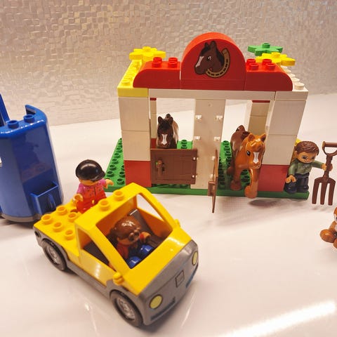 LEGO DUPLO City maatila leikkisetti sisältää hevosia, kissan, auton ja muita maatilaan liittyviä osia. Kunto on hyvä, ei ole ohjetta, kaikki osat tallella.