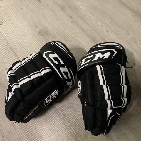 Kohtalaisessa / korjausta vaativassa kunnossa olevat CCM-merkkiset koon 15 jääkiekkohanskat.