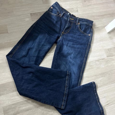 Matala vyötärö ja suora istuvuus.