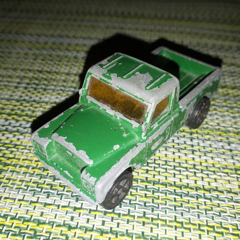 Auto on ikäisekseen ja leikkimäärään nähden hyvässä kunnossa. Pikku naarmuja ja kuvissakin näkyvää kulumaa on siellä täällä. Pyörät pyörivät hyvin. Lisäksi autoa on varmasti kolaroitu satoja ellei tuhansia kertoja sekä varmasti ajettu jyrkänteeltäkin alas rotkoon monta monituista kertaa. Ikää autolla on arviolta ainakin 40-50 vuotta.