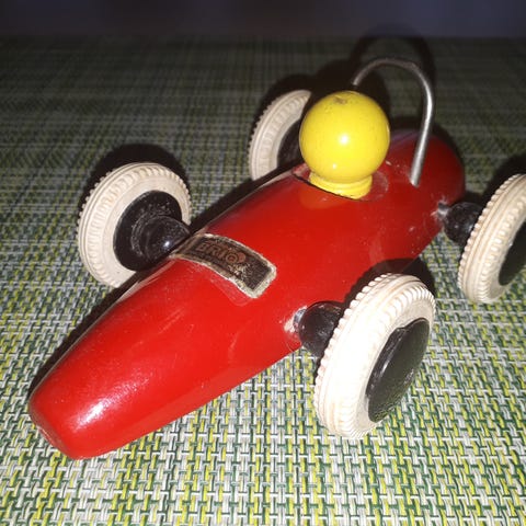 Auto on ikäisekseen ja leikkimäärään nähden hyvässä kunnossa. Pikku naarmuja ja kuvissakin näkyvää kulumaa on siellä täällä. Pyörät pyörivät hyvin. Auto on toiminut niin, että, kun autoa on samalla painettu alaspäin ja liikutettu taaksepäin ja tämän jälkeen päästetty irti, niin ampaissut kovaan vauhtiin eteenpäin. Tämä mekanismi on nyt rikki, mutta lienee korjattavissa näppäräsormiselle taitajalle. Lisäksi autoa on varmasti kolaroitu satoja ellei tuhansia kertoja sekä varmasti ajettu jyrkänteeltäkin alas rotkoon monta monituista kertaa. Autolla on ikää ainakin 40-50 vuotta.