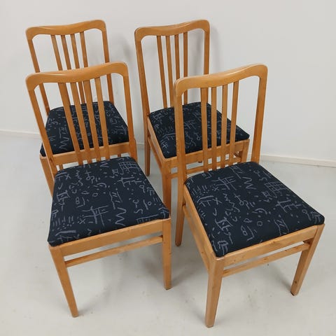 Kunnostettu ja verhoilu uusittu. Lahden puunjalostuksen hyväkuntoiset vintage tuolit 60-luvulta hinta 5 kappaleelle.