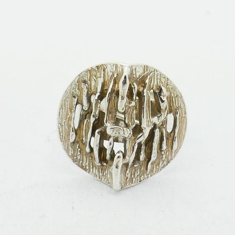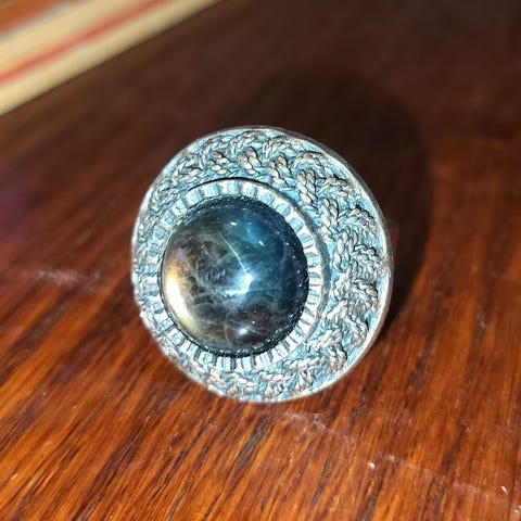 The Franklin Mintin julkaisema vintage-keräilyrengas, malli «Showstopper», on luonut suunnittelija Bob Mackie, näyttävien korujen suunnittelun ikoninen hahmo The Franklin Mintin talossa.Tämä sormus esittelee merkittävän keinotekoisesti sinisen facetoidun safiirin, joka tarjoaa syvän ja kirkkaan värin, ympärillään valkoisia kubik-zirkoneja, timantin kaltaisella kiillolla. Koko kokonaisuus on veistoksellisessa 925 sterling-hopeakehyksessä, päällystetty 22 karaatin kultauksella, mikä antaa kappaleelle huomattavan visuaalisen presence.Asetus on rikkaasti työstetty, tarkalla kivien asetuksella ja tyypillisen Franklin Mintin Bob Mackie -luomusten arkkitehtuurille ominaisella rakenteella, suunniteltu todellisiksi lavakoruiksi.Sormus on kuin uusi ja säilytetty laatikossaan.Se myydään alkuperäisessä esittelylaatikossaan.Lukuisat valokuvat ovat olennainen osa myyntiä ja antavat tarkasti arvioida kuntoa ja yksityiskohtia.OminaisuudetMaison: Franklin MintSuunnittelija : Bob MackieMalli: ShowstopperTyyppi: keräily sormusKeskikivi: sininen tekosafiiriKivien lisäkivet: kuutiuzirkoniaMetalli: Sterling-hopea 925Viimeistely: 22 karaatin kultausAikakausi: VintageSormuksen koko: FR 54 (sisähalkaisija noin 17 mm).Lisävarusteet : alkuperäinen laatikkoHuolellinen ja ammattimainen lähetys, jossa on seuranta.Kaikki valokuvat ja yksityiskohtainen kuvaus kertovat kohteen kunnosta.Franklin Mint, Bob Mackie, vintage-sormus, keräily-sormus, keinotekoinen safiiri, kuutiokvartsizirkonia, kultakoristeinen koru, muotikoru, näyttävä koru, lahjaidea, Ystävänpäivä.Onnea Catawikin huutokauppaan!!!