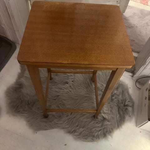 Siron kokoinen sivupöytä 50-luvulta. Viilupinnassa pieniä ajan tuomia merkkejä.
