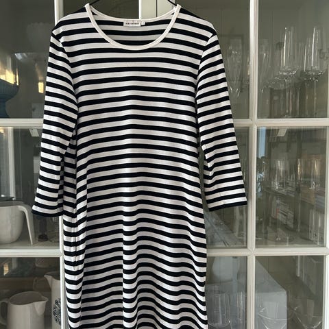 Marimekko Aretta mekko, koko S. Mekko on valmistettu puuvillasta ja siinä on kirjava kuosi.