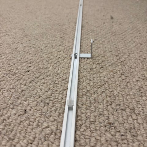 Ikean valkoinen Räcka verhotanko, pituus säädettävä 210-385 cm sekä kolme kiinnitettä.