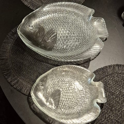 Vintage Arcoroc France -lasinen kalalautanen, tarjoilulautasten setti